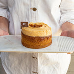 Elegant and indulgent, this luscious white chocolate vanilla cake is topped with creamy white chocolate ganache and a zing of passionfruit. Handmade by Dello Mano to delight every guest.